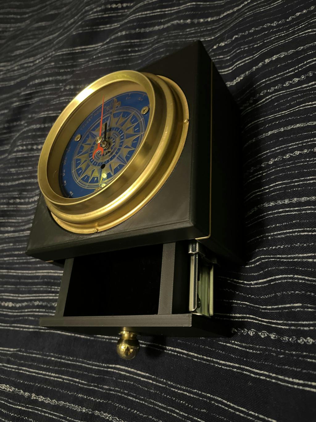The compass on top points the way. The drawer stays locked until they get there. And when it finally opens, there's a hidden compartment inside — one last secret after they think they've found everything.