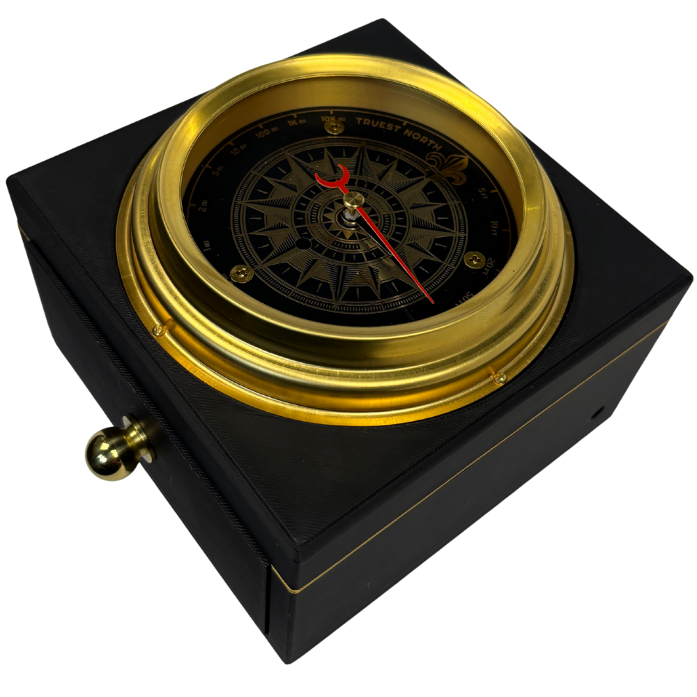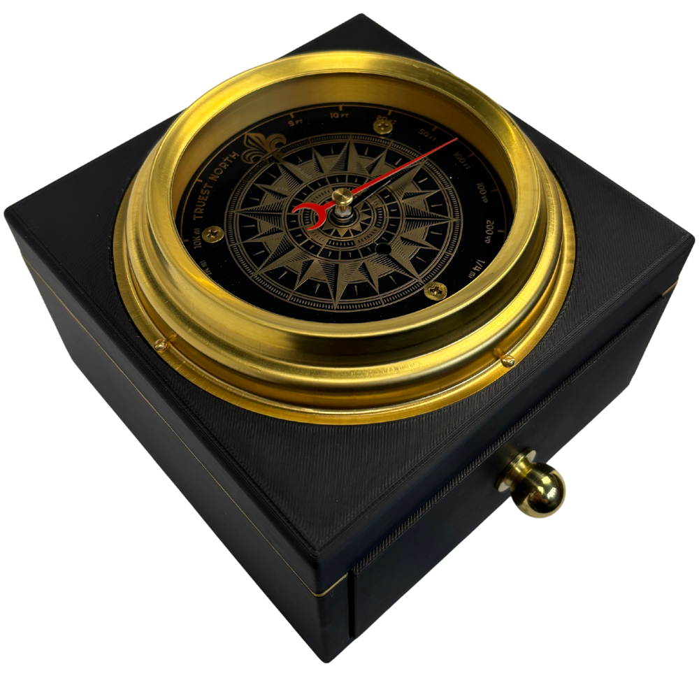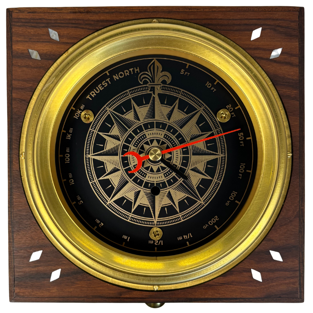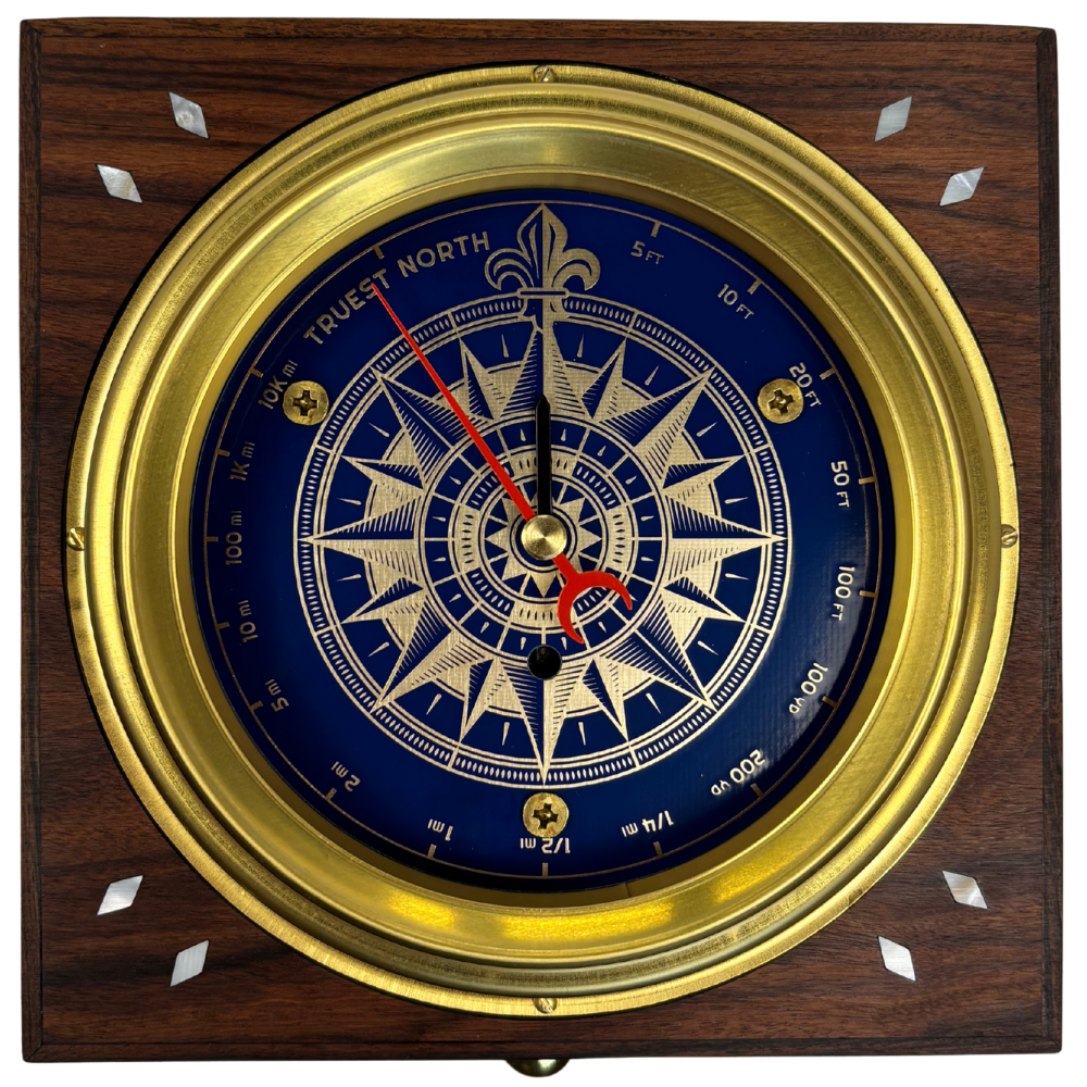 I opted for a custom face plate, of my own design and had many, many questions. The craftsman responded promptly, and also sent pictures for approval, before he eloquently placed together this masterpiece of a compass which will now become a family heirloom! There was not one spot or blemish on the compass or the box. The attention to detail blew me away. From the felt inside the box, to the copper, and the wood that’s surrounded the destination where my family began. This destination of matrimony will now be able to be passed down through generations; thanks to a generous craftsman who not only takes pride in his work, but also the customer service that he provides. Not only did this timeless classic compass bring my wife to tears of joy, but also my children loved the idea of being able to take a piece of their parents and carry it with them forever.