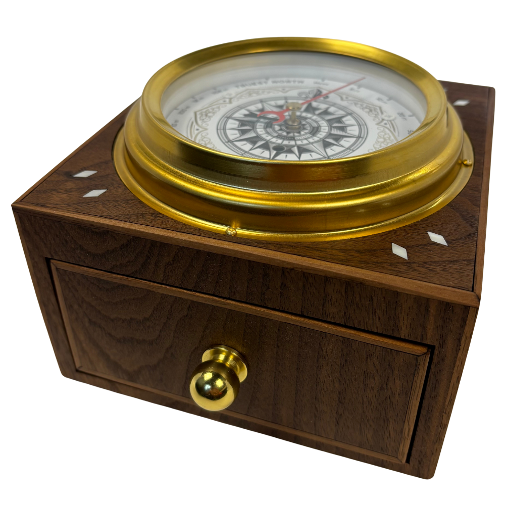 Each Prox Box is hand-veneered with thick, shop-sawn real wood: 1/16″ faces and 1/8″ matching edge banding, bonded to a precision 3D-printed PLA core for perfect fit and long-term stability. Mother of Pearl inlay accents. Brass knob. Grain-matched corners. Hand-rubbed danish oil finish.